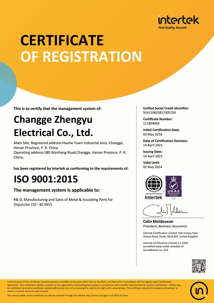 質量管理體系認證證書